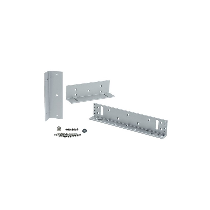 Electromagnetul se monteaza deasupra usii, in interior, folosind suportul L. Contraplaca se monteaza pe usa, la nivelul electromagnetului, folosind suportul Z.